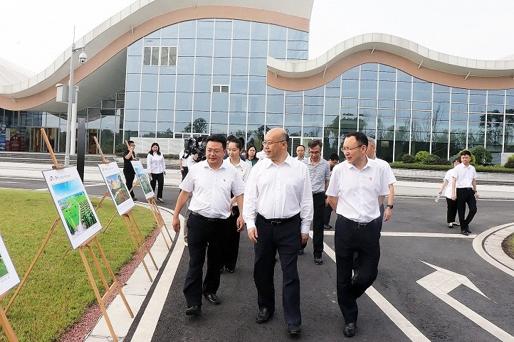 省委常委、組織部長王正譜調研四川發展天府國際慢城風吹稻花綜合體項目綜合運營情況。