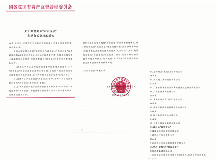 經國務院國有企業改革領導小組批準,新筑股份進入“雙百企業”名單,成為“國企改革雙百行動”企業之一。