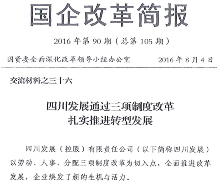 四川發展召開“深化改革推進大會”,推出集團化管控架構及職能調整、投融資及資本運作、薪酬體系等的14項重點改革方案以及一系列改革舉措,開啟了四川發展新一輪全面深化改革新征程