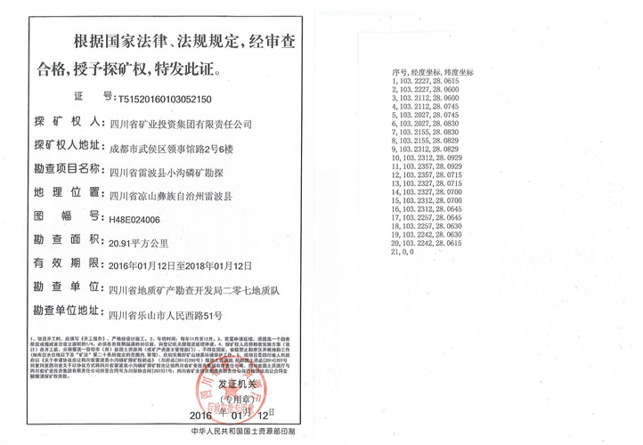 整合優勢礦產資源工作取得實質性突破。3月,組織礦投集團與雷波縣簽訂《小溝磷礦礦業權合作協議書》。