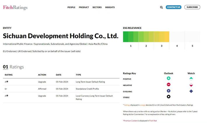 2024年2月,成為四川省唯一一家惠譽國際信用A評級企業,為中西部企業中最高國際信用評級水平。